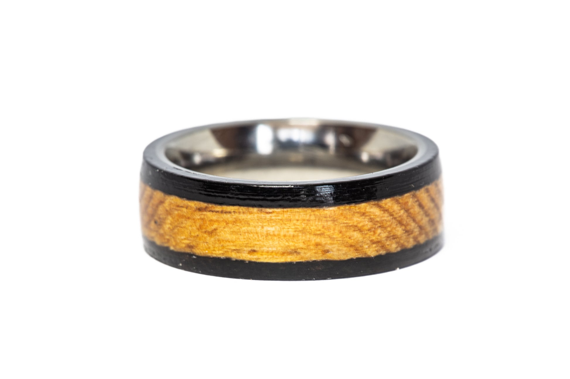 These rings are made with the genuine wooden seats installed prior to the 1948 Olympic Games at Wembley Stadium! Wembley hosted the opening and closing ceremonies, track and field, equestrian, football (soccer) finals, and field hockey finals in the historic building that was closed in 2000, demolished, and fully rebuilt in 2007. Your ring comes with a central band of wood from the Wembley Stsdium seats, black Gaboon Ebony wood edges, and your choice of our comfort fit liners.