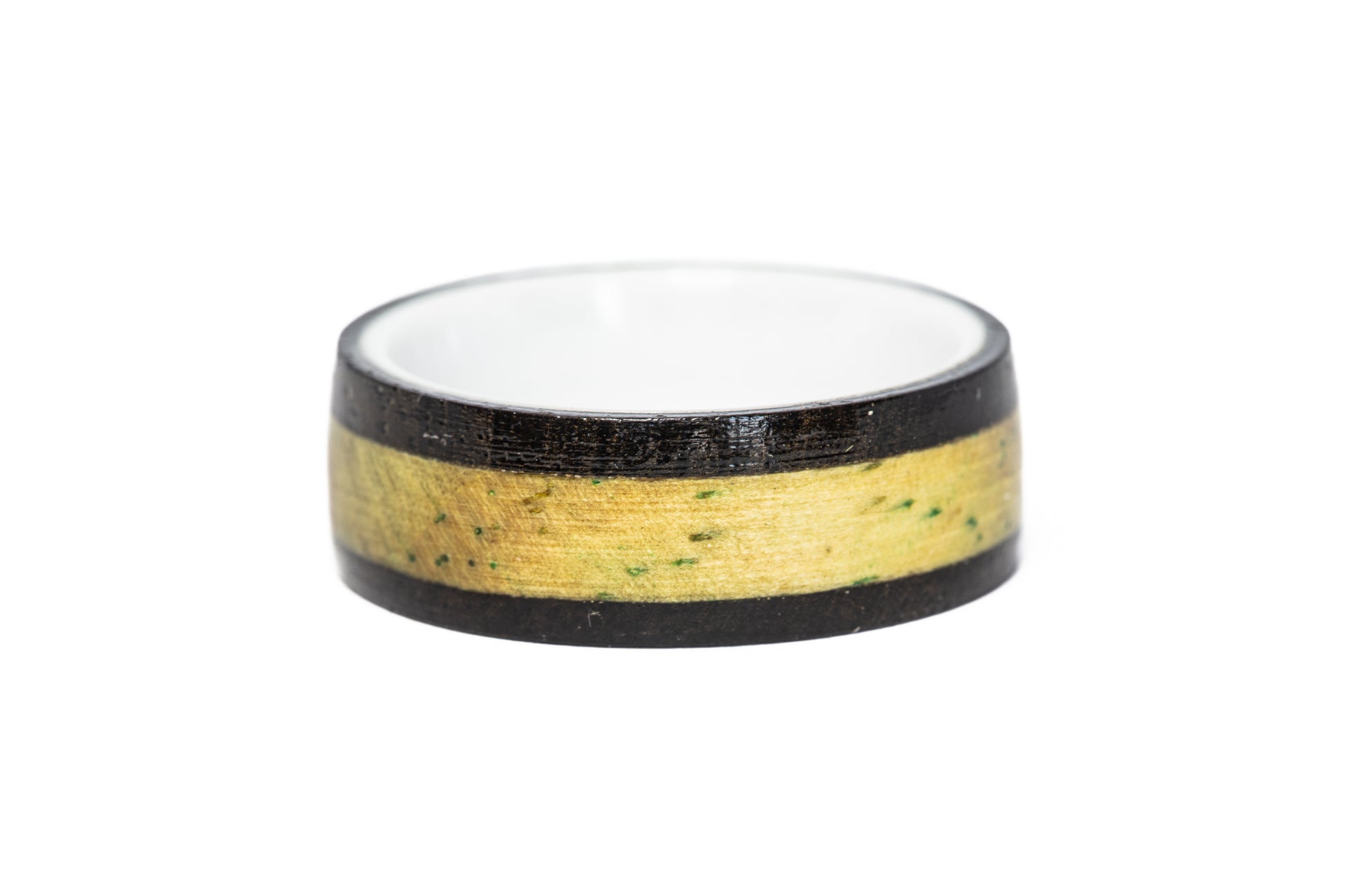 Own a piece of history with this ring made with wood from the structure of Bryant-Denny Stadium, home of the Alabama Crimson Tide football team! This wood was removed during 2020 renovations to the stadium near Gate 22. Surrounding the stadium wood are bands of black Gaboon Ebony wood, along with your choice of our comfort fit liners.