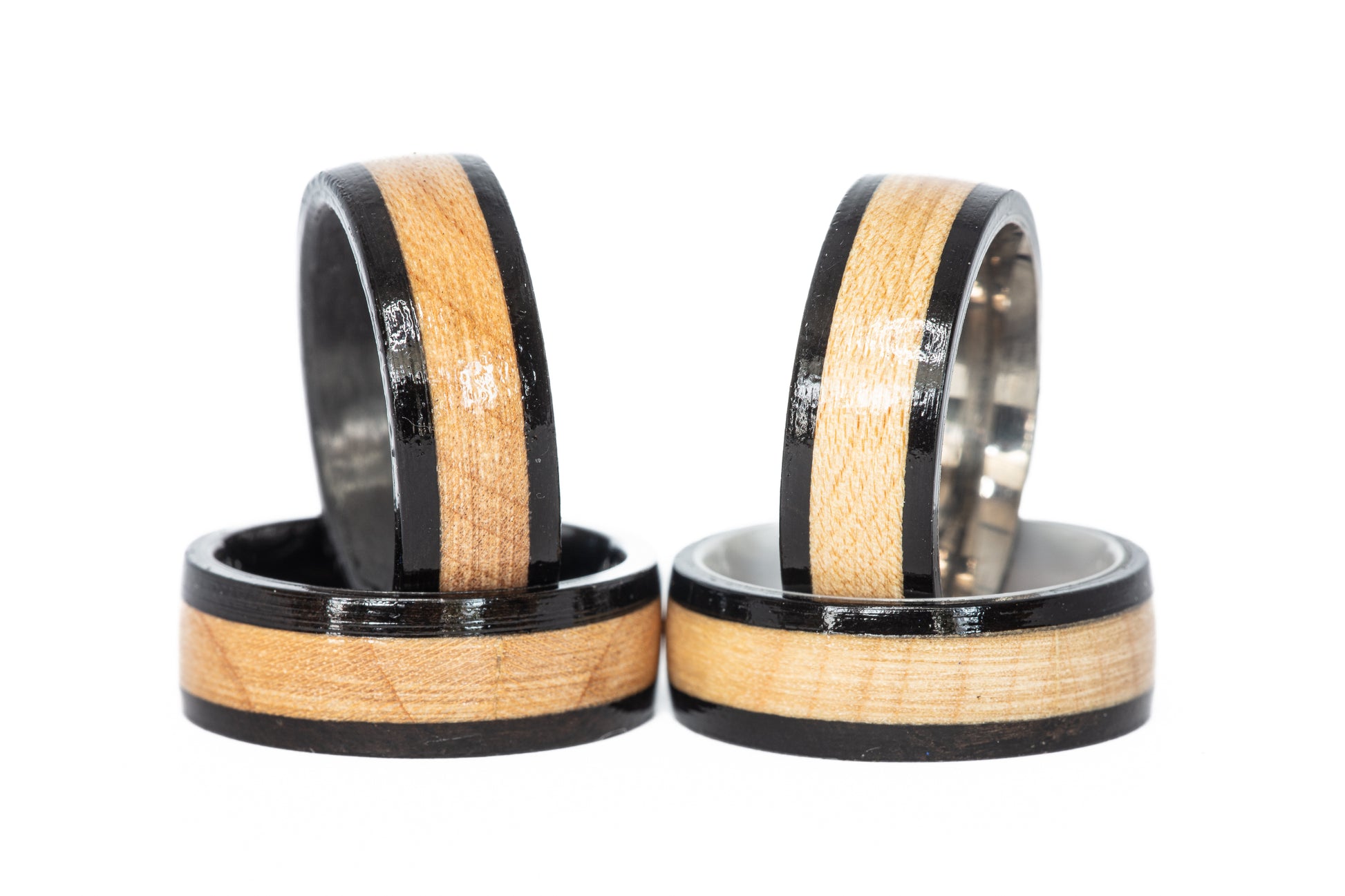Each ring is delivered in a custom wooden ring box with a hinged, magnetic closure. The inside lid of the box is engraved with the origin of the wood used for the ring. Each ring also comes with a dated certificate of authenticity with individual serial identification numbers to prove the unique origin of the material used for your ring!