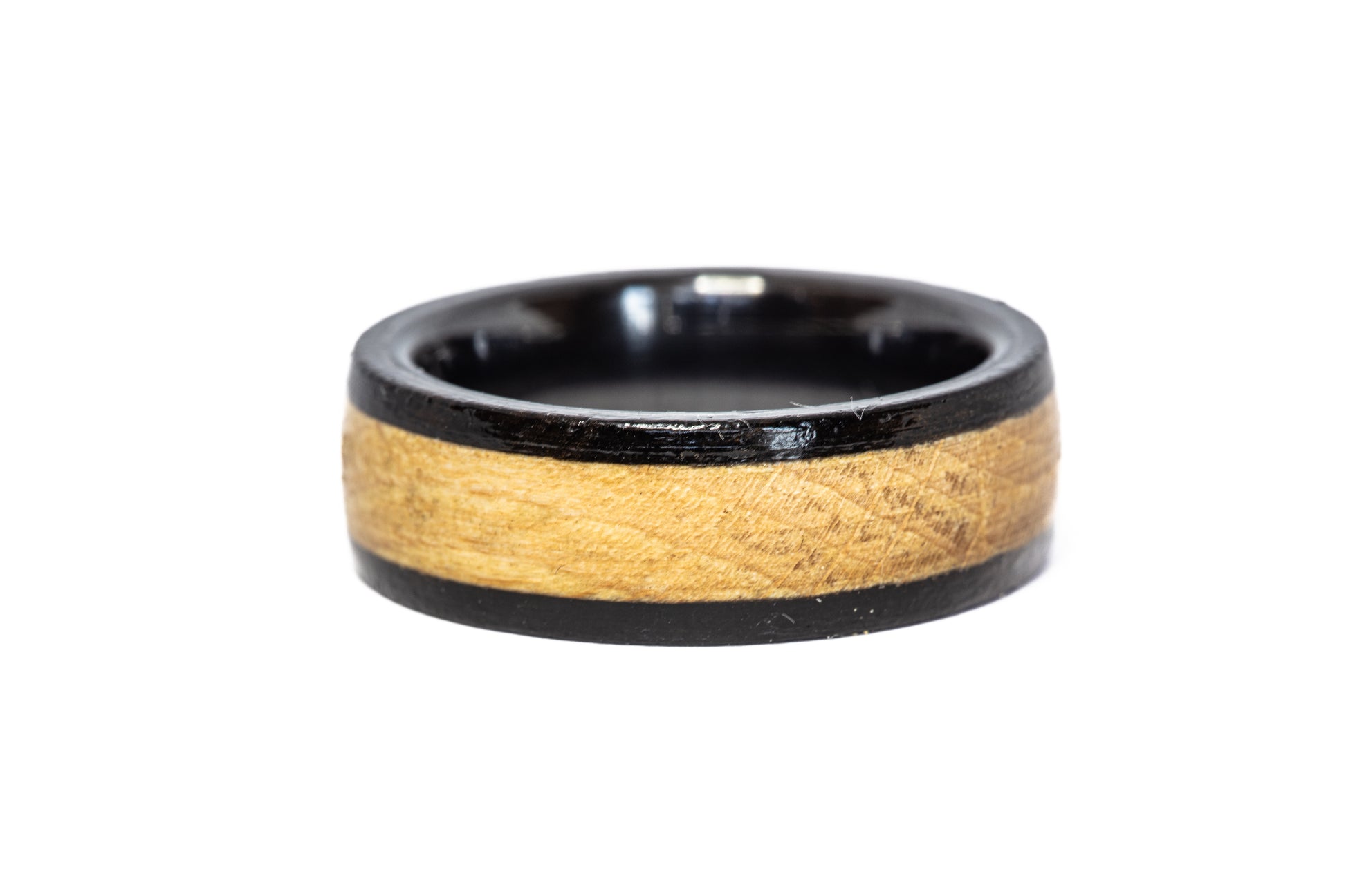 Each ring is delivered in a custom wooden ring box with a hinged, magnetic closure. The inside lid of the box is engraved with the origin of the wood used for the ring. Each ring also comes with a dated certificate of authenticity with individual serial identification numbers to prove the unique origin of the material used for your ring!