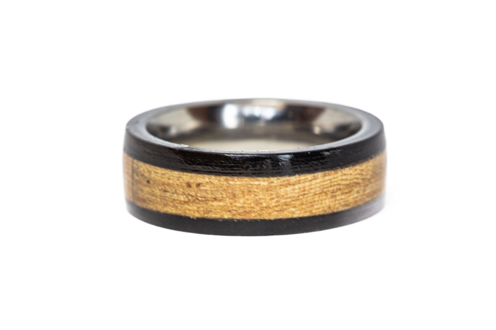 Each ring is delivered in a custom wooden ring box with a hinged, magnetic closure. The inside lid of the box is engraved with the origin of the wood used for the ring. Each ring also comes with a dated certificate of authenticity with individual serial identification numbers to prove the unique origin of the material used for your ring!