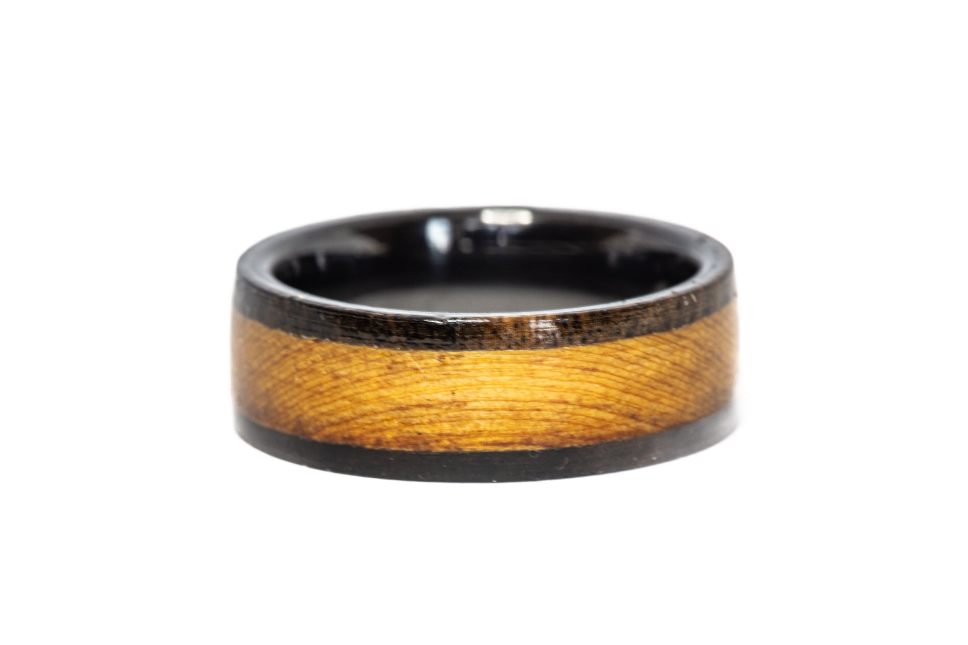 Each ring is delivered in a custom wooden ring box with a hinged, magnetic closure. The inside lid of the box is engraved with the origin of the wood used for the ring. Each ring also comes with a dated certificate of authenticity with individual serial identification numbers to prove the unique origin of the material used for your ring!
