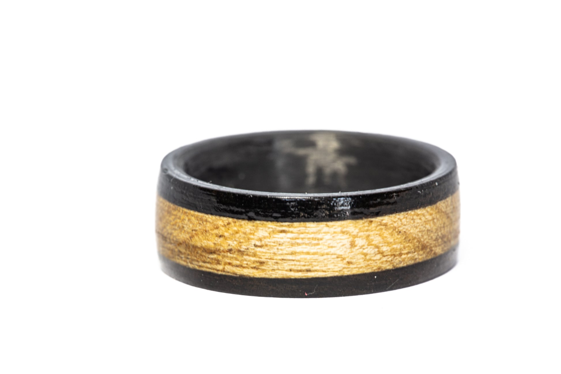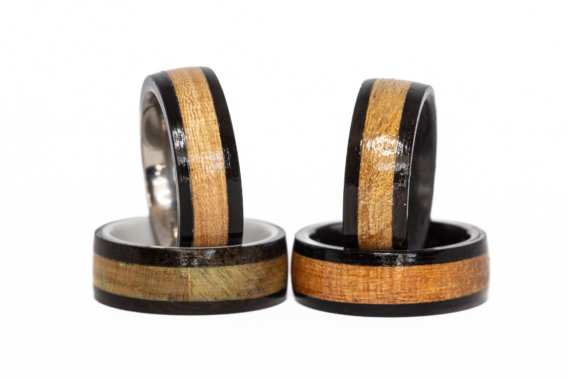 Each ring is delivered in a custom wooden ring box with a hinged, magnetic closure. The inside lid of the box is engraved with the origin of the wood used for the ring. Each ring also comes with a dated certificate of authenticity with individual serial identification numbers to prove the unique origin of the material used for your ring!