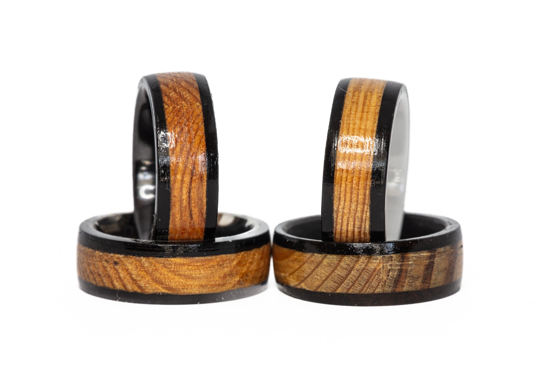 Each ring is delivered in a custom wooden ring box with a hinged, magnetic closure. The inside lid of the box is engraved with the origin of the wood used for the ring. Each ring also comes with a dated certificate of authenticity with individual serial identification numbers to prove the unique origin of the material used for your ring!